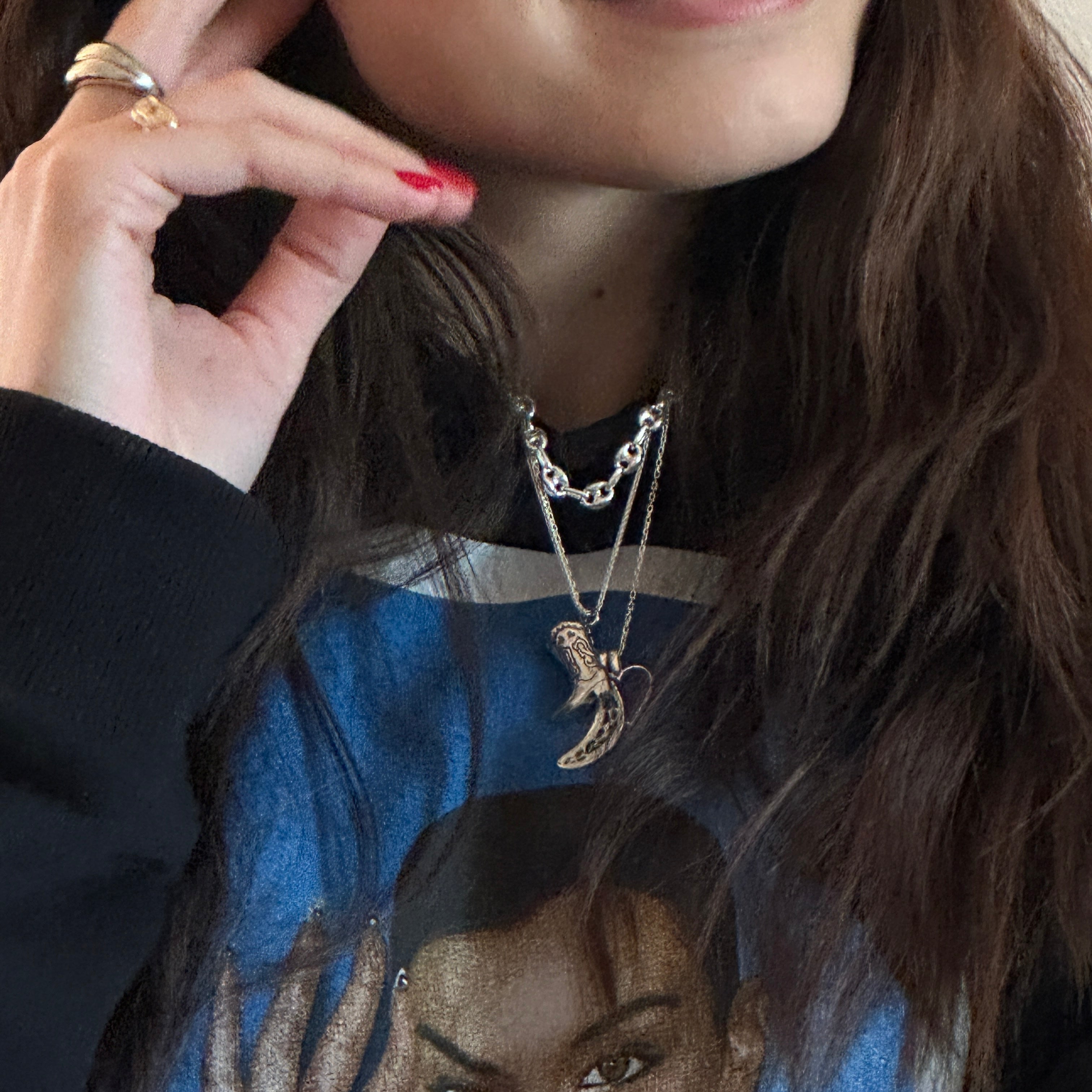 Oltâ charmları, 925 ayar gümüşten ve el işçiliğiyle üretilir. Her parça, ustalarımızın titiz çalışmasıyla hayata geçirilir; gümüşün doğal dayanıklılığı formunu korurken, özenli kullanımla ışıltısını uzun süre kaybetmez. Ciltle dost yapısıyla öne çıkan gümüş, diğer materyallerin aksine vücutta iz bırakmaz ve alerjiye neden olmaz.