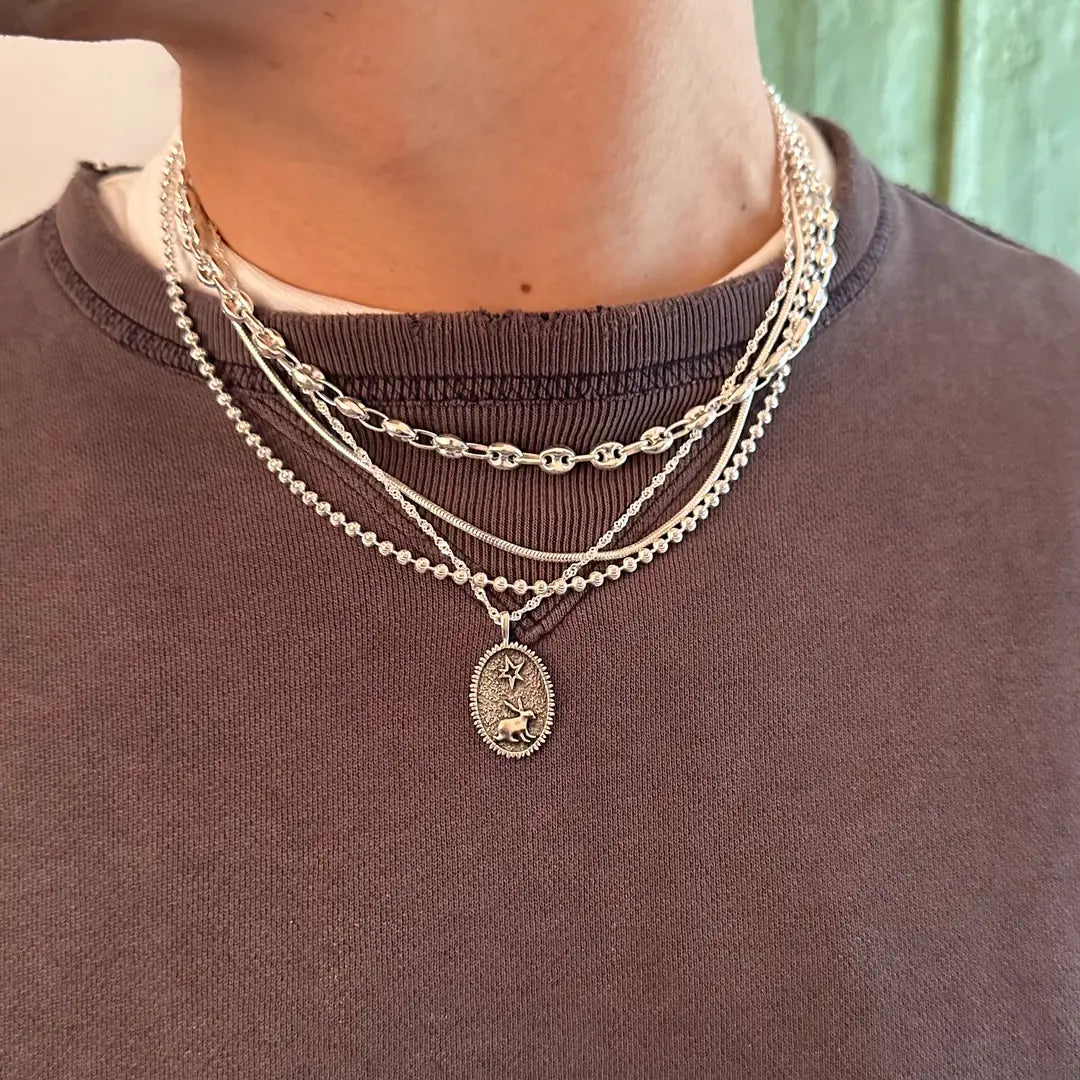 Oltâ zincirleri, 925 ayar gümüşten ve el işçiliğiyle üretilir. Her parça, ustalarımızın titiz çalışmasıyla hayata geçirilir; gümüşün doğal dayanıklılığı formunu korurken, özenli kullanımla ışıltısını uzun süre kaybetmez. Ciltle dost yapısıyla öne çıkan gümüş, diğer materyallerin aksine vücutta iz bırakmaz ve alerjiye neden olmaz.