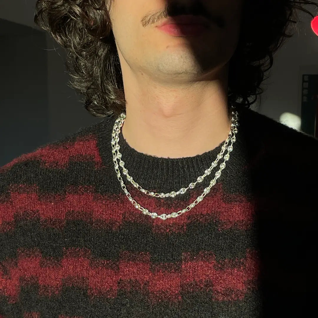Oltâ zincirleri, 925 ayar gümüşten ve el işçiliğiyle üretilir. Her parça, ustalarımızın titiz çalışmasıyla hayata geçirilir; gümüşün doğal dayanıklılığı formunu korurken, özenli kullanımla ışıltısını uzun süre kaybetmez. Ciltle dost yapısıyla öne çıkan gümüş, diğer materyallerin aksine vücutta iz bırakmaz ve alerjiye neden olmaz.